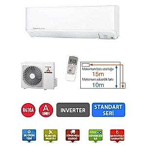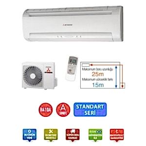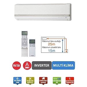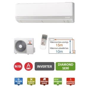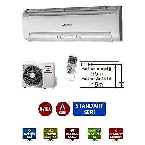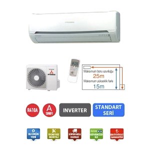 Mitsubishi’den İklimsa güvencesinde, 8530 Btu/h soğutma ve 9553 Btu/h ısıtma kapasitesi ile çalışan R410A gazlı, A sınıfı SRK 25 ZMP-S Mitsubishi inverter klima.