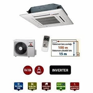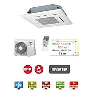 Mitsubishi’den İklimsa güvencesinde, 34120 Btu/h soğutma ve 38214 Btu/h ısıtma kapasitesi ile çalışan, R410A gazlı FDT 100 VNVF inverter Mitsubishi İnverter Kaset Tipi Klima.