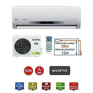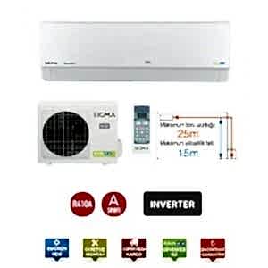 Sigma’dan, 22000 Btu/h soğutma ve 24000 Btu/h ısıtma kapasitesi ile çalışan R410A gazlı, A sınıfı SGM 24 INVDME Sigma duvar tipi klima.
