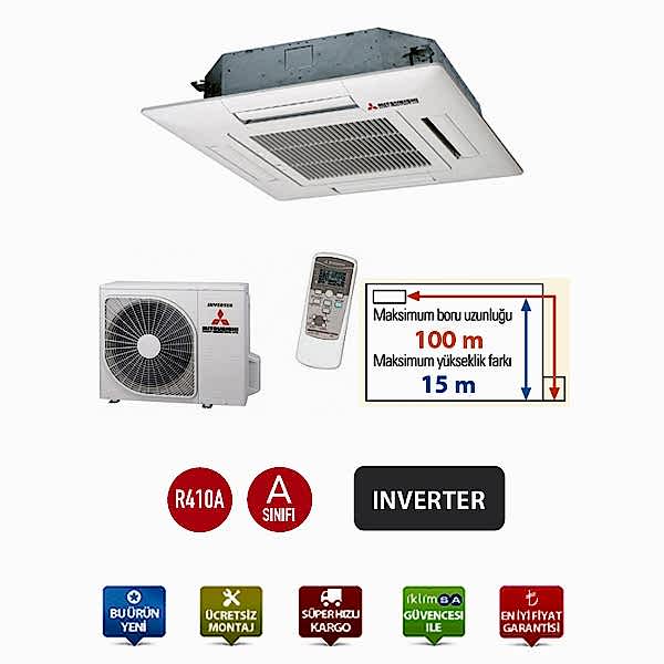 Mitsubishi’den İklimsa güvencesinde, 42650 Btu/h soğutma ve 47768 Btu/h ısıtma kapasitesi ile çalışan, R410A gazlı FDT 125 VNXVF inverter Mitsubishi İnverter Kaset Tipi Klima.