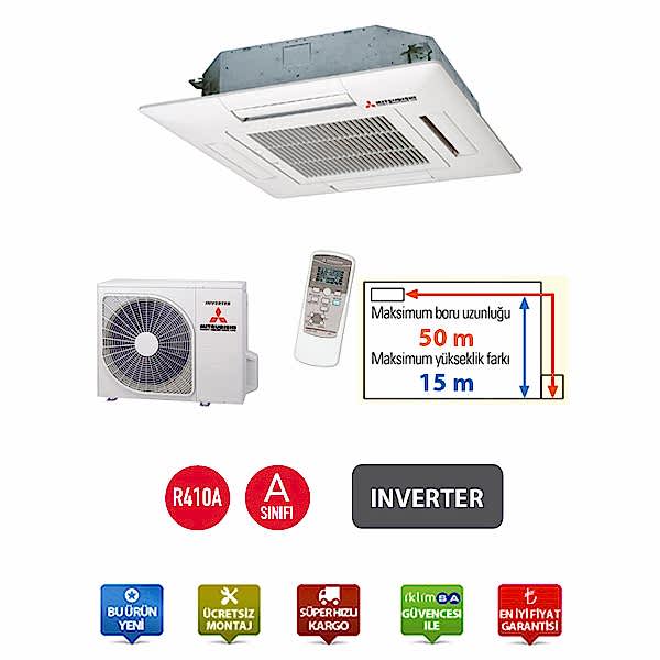 Mitsubishi’den İklimsa güvencesinde, 17060 Btu/h soğutma ve 18425 Btu/h ısıtma kapasitesi ile çalışan FDTC 50 ZJXVD inverter,R410A gazlı Mitsubishi kaset tipi klima.